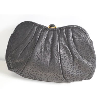 Embossed Black Leather Clutch Purse By Tiras